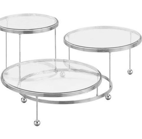Eleganter 3-teiliger Ständer für Hochzeitstorten, aber auch andere kreative Torten. Aus verchromten Metall. Die Ablagen sind aus kristallklarem, durchsichtigen Kunststoff. Abmessungen; 20, 25 und 30 cm.