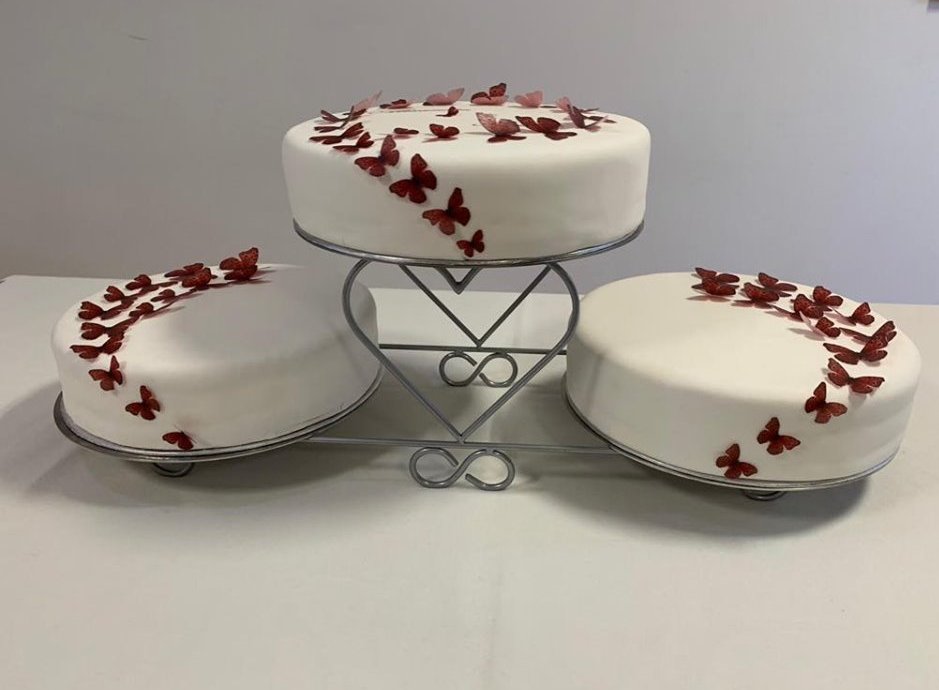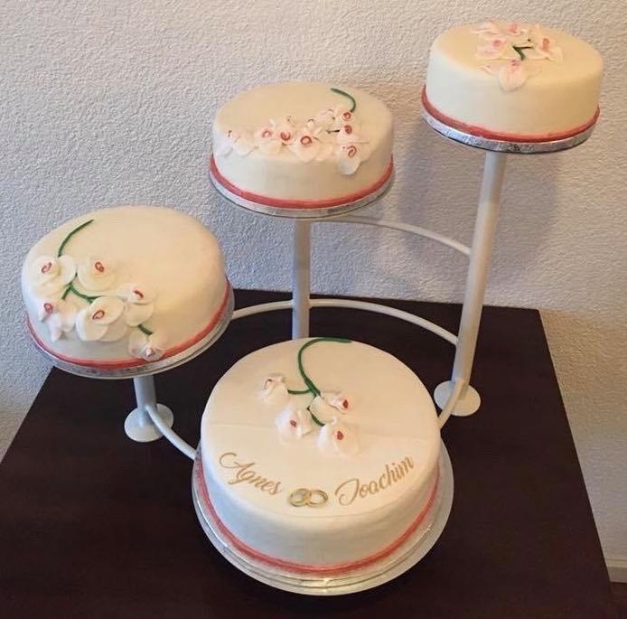 Metalltortenständer für schwere Kuchen mit Edelstahlscheiben in den Durchmessern 26cm oder 31cm, bitte geben Sie die Größen in Ihrer Bestellung mit an.