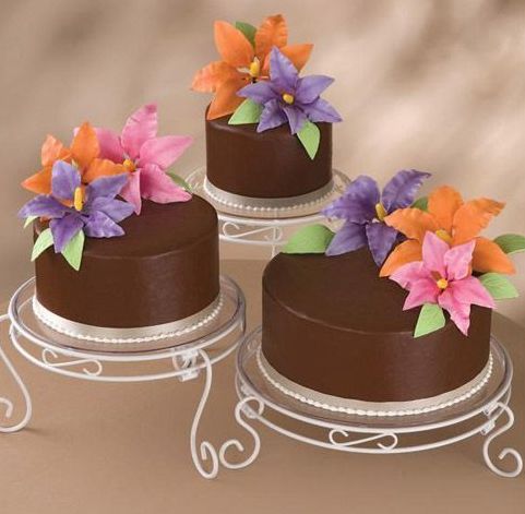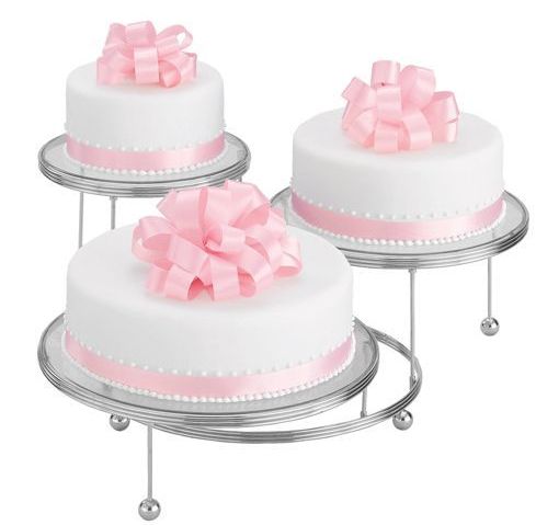 Graziler Ständer von Wilton für 3 Torten mit kristallklaren Ablagen, die jede für sich stabil gelagert ist. Ideal für z.B. Hochzeitsfeste und Geburtstage, natürlich auch für Cupcakes, Muffins usw. lassen sich damit schön präsentieren.