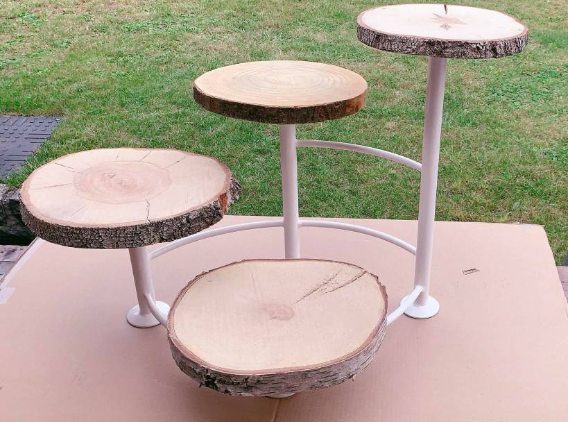 Metalltortenständer für schwere Kuchen mit Edelstahlscheiben in den Durchmessern 20cm, 26cm oder 31cm die Sie variieren können wie Sie wollen wie z.B. alle in Durchmesser 31cm usw.